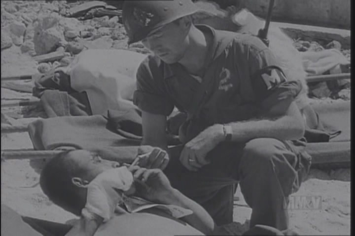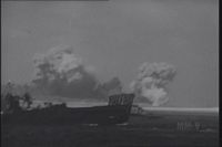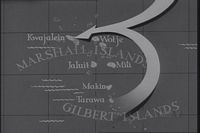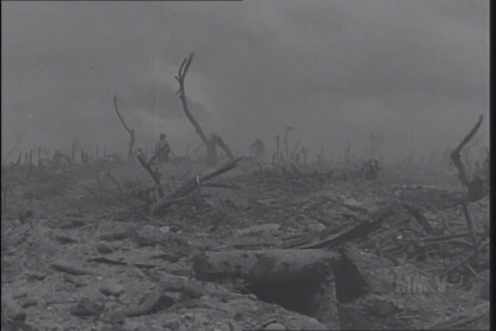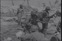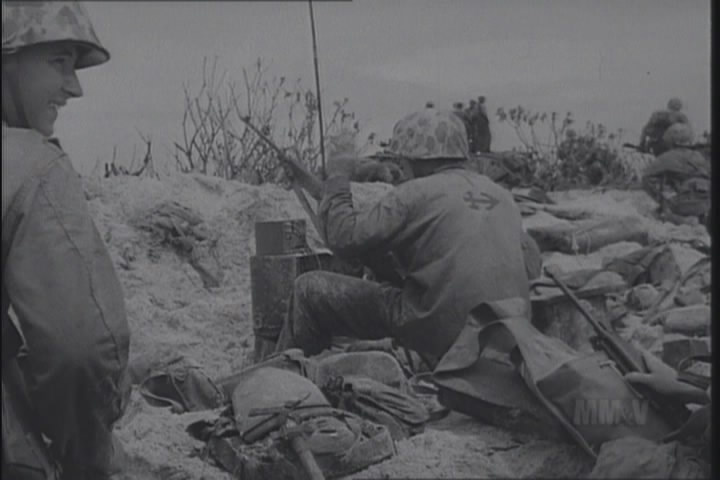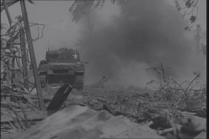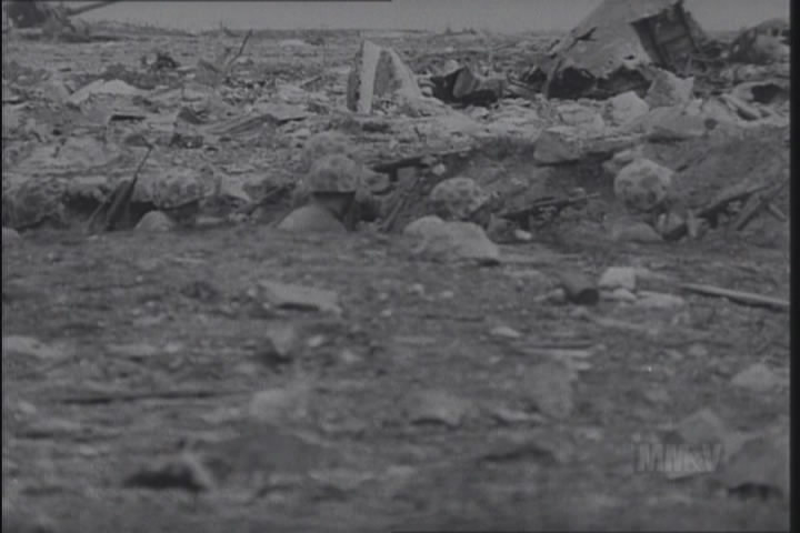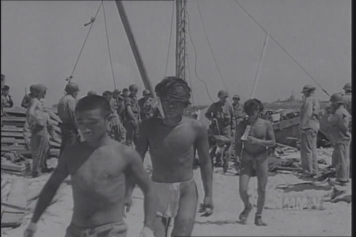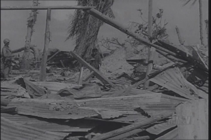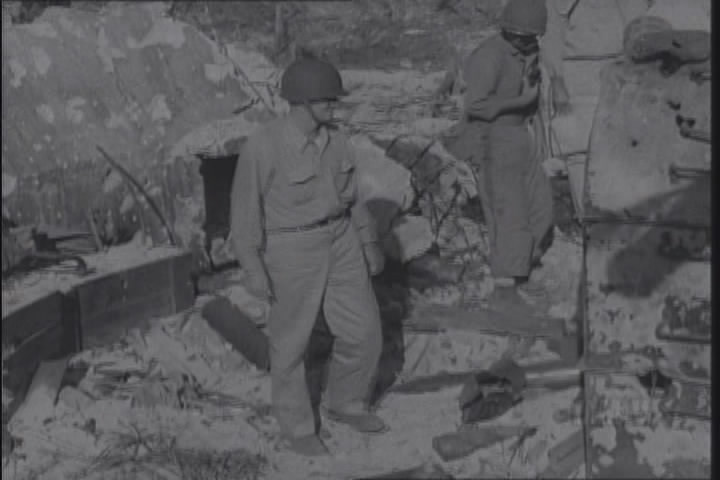 264 Japanese surrendered out of 10,000 troops. Scenes of fighting on other of the islands is the group are shown.