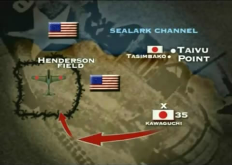 Tasimbako was taken by the Americans, but a larger Japanese group had already headed south, planning an attack on Henderson Field. The Japanese made a dozen charges against the Americans, but were held off.