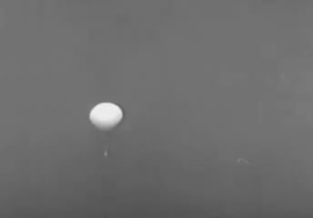 A balloon bomb in flight.