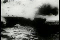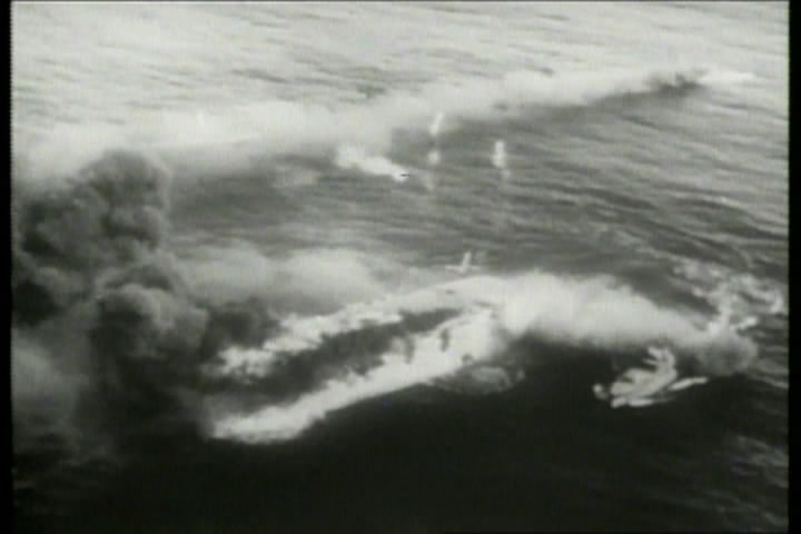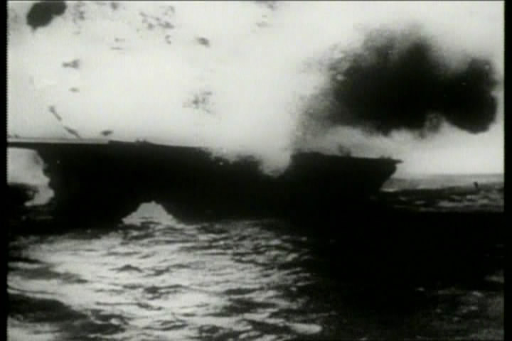 The U.S. dive bombers begin to attack and sink the Japanese carriers.