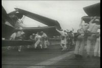 Planes on the one remaining Japanese carrier launch to attack the U.S. carriers.