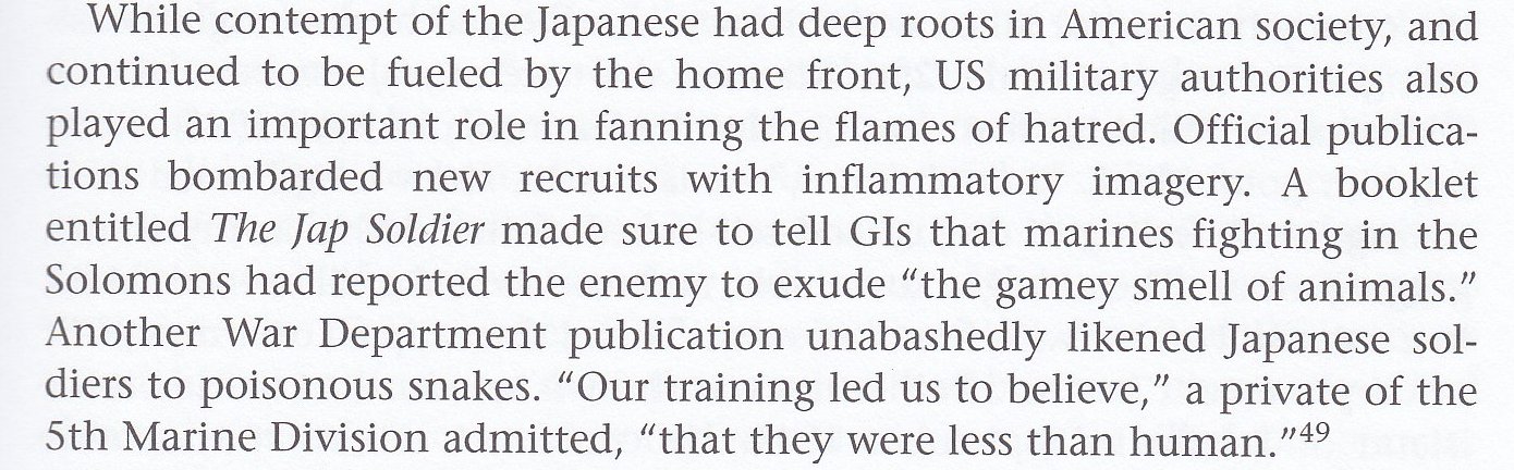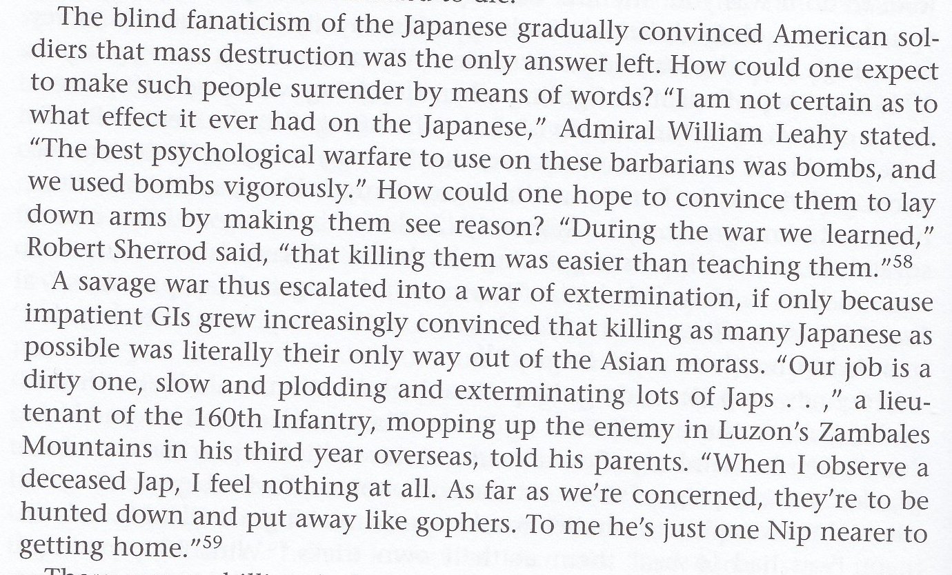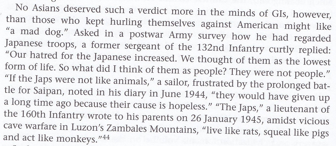 Then the author explores the racial hatred the American soldiers had for the Japanese.