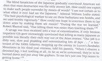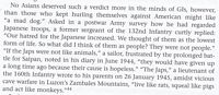The belief to some was that the Japanese had little concern for their own lives since there were so many of them, and that life, to the Oriental, was cheap.