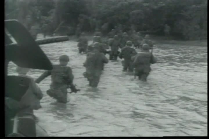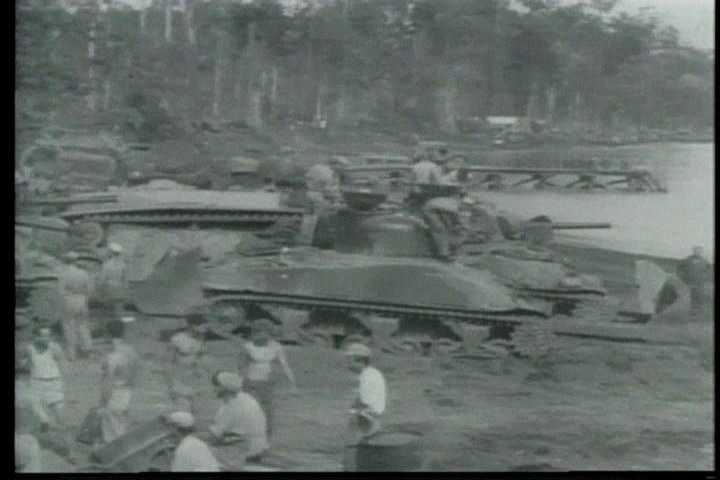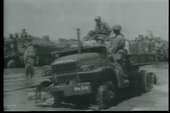 Vehicles are water-proofed in preparation for an amphibious landing.