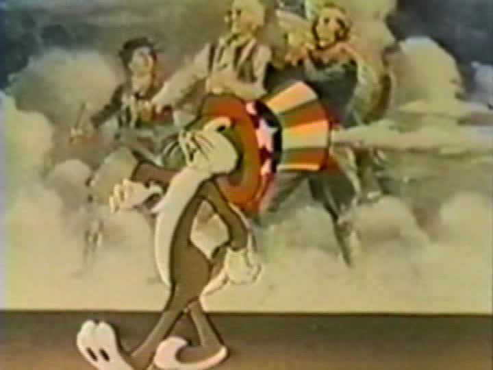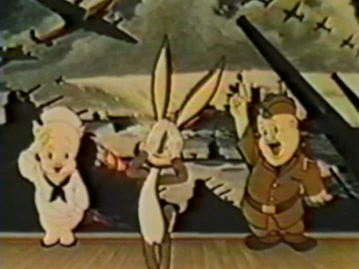 I had never seen this one before and I thought it was really a neat cartoon, that is, until it revealed its racism when Bugs goes blackface. The entire cartoon is Bugs (and others) singing about buying savings bonds and stamps to finance the war effort.