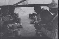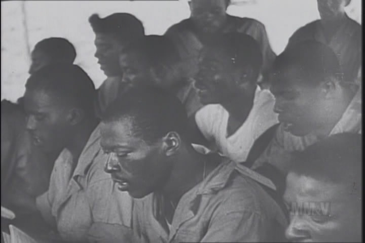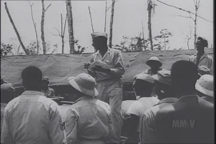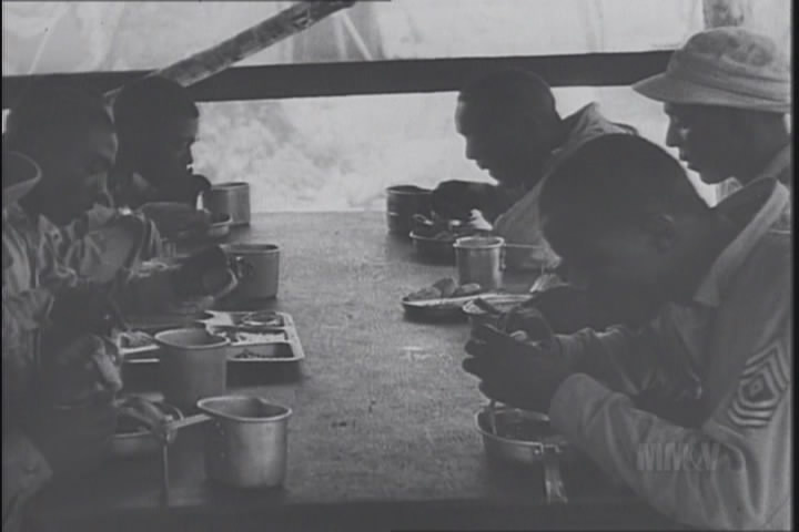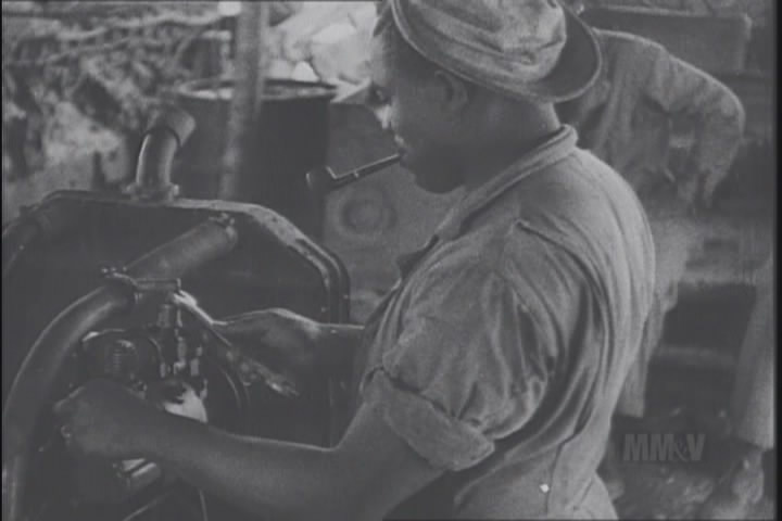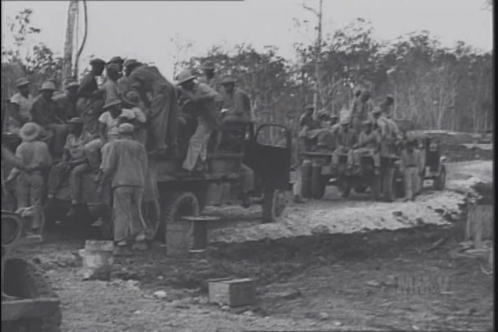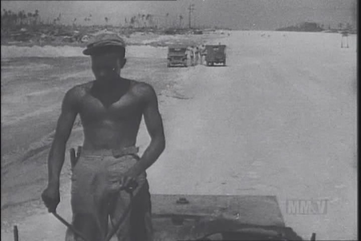 A group of engineers set out to rebuild Munda's airfield. Notice that they are all black. There was quite a bit of racism in the military, and blacks were largely confined to being engineers, cooks, stewards, and similar workers.