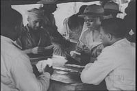 More scenes of construction, receiving mail, eating, praying and playing cards.