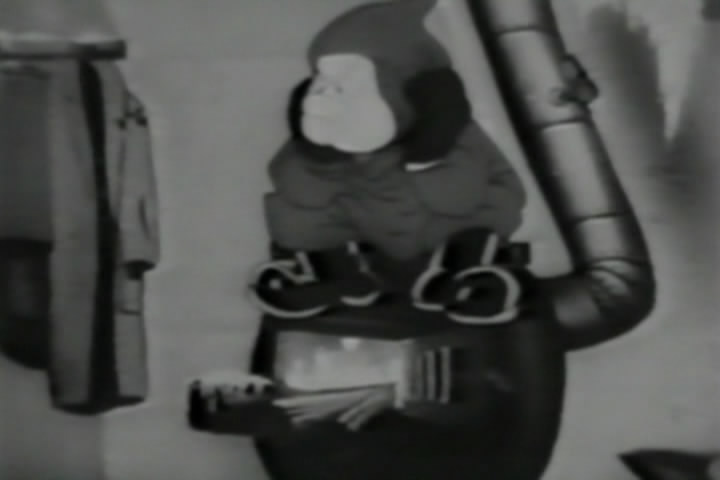 His mother (plus a cat and a horse, for some reason) are working on planting a victory garden.