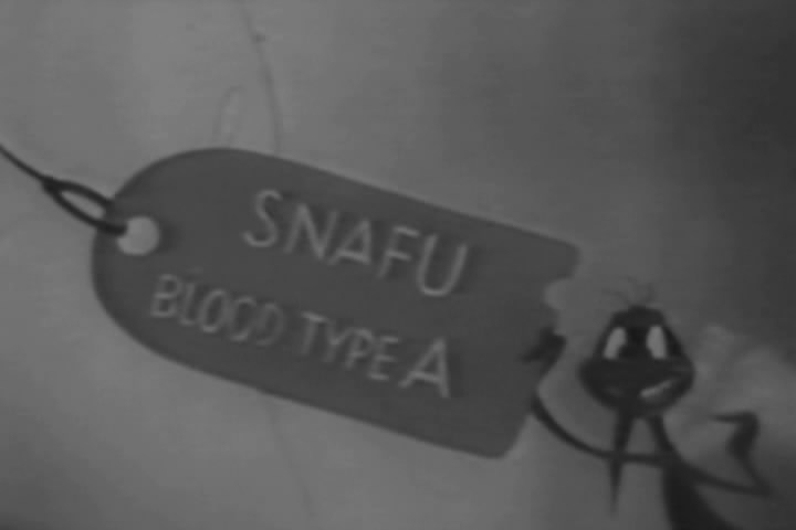Snafu is still nude and the mosquito is checking him out.