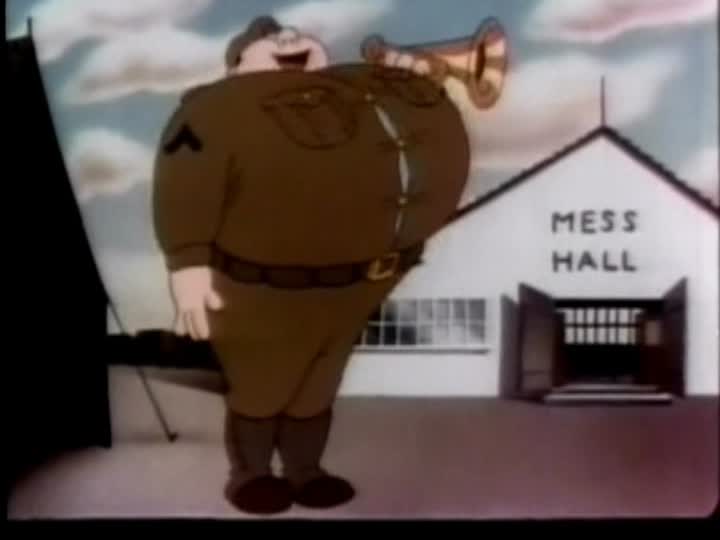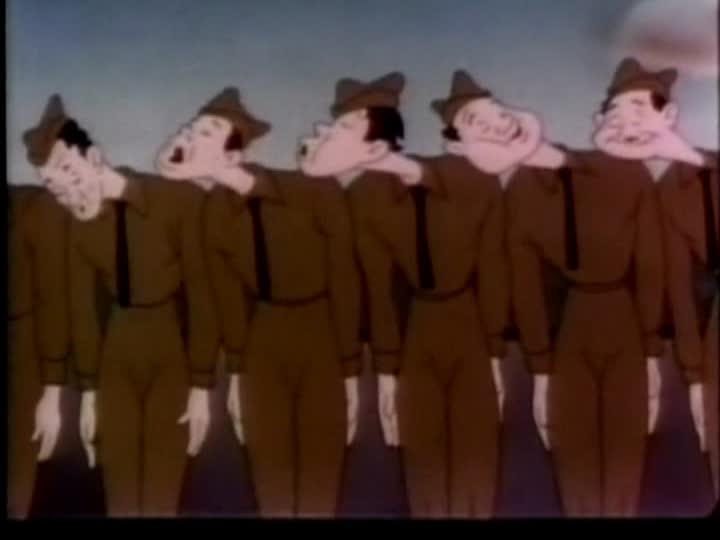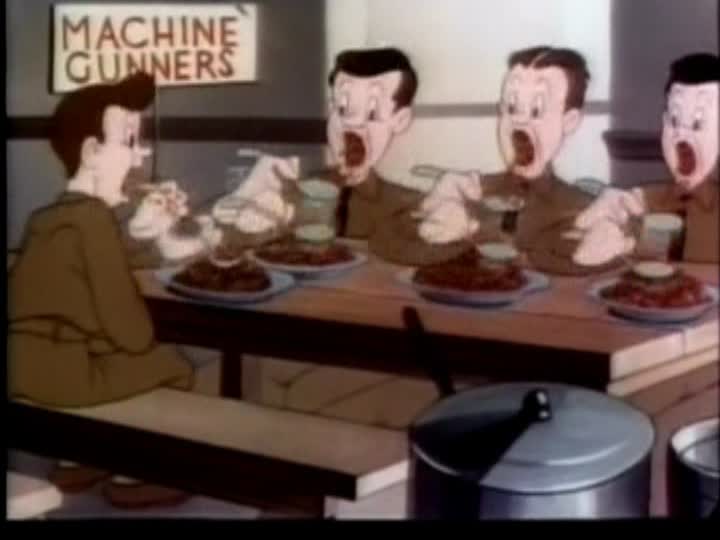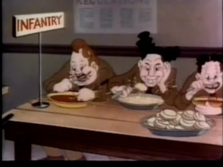 A typical Army camp, Fort Mix. There's one soldier so dumb he doesn't know that four comes after three. It's entirely about the Army and shows various kinds of soldiers and weapons. No actual mention is made of Germans or Japanese.