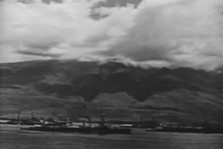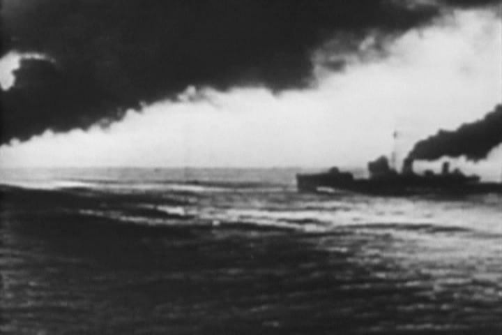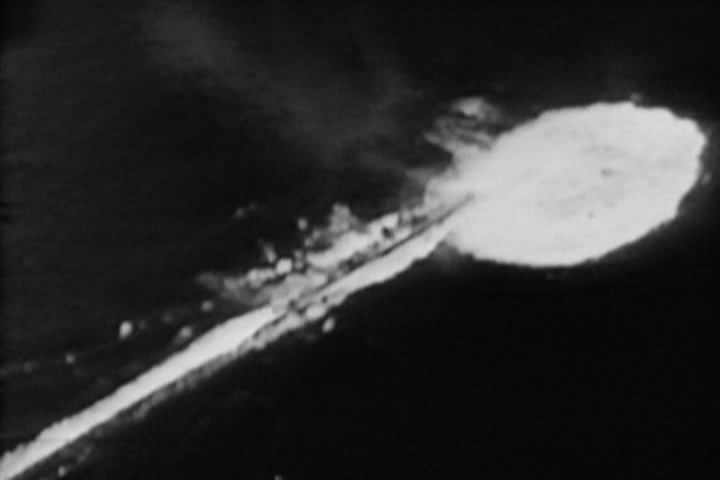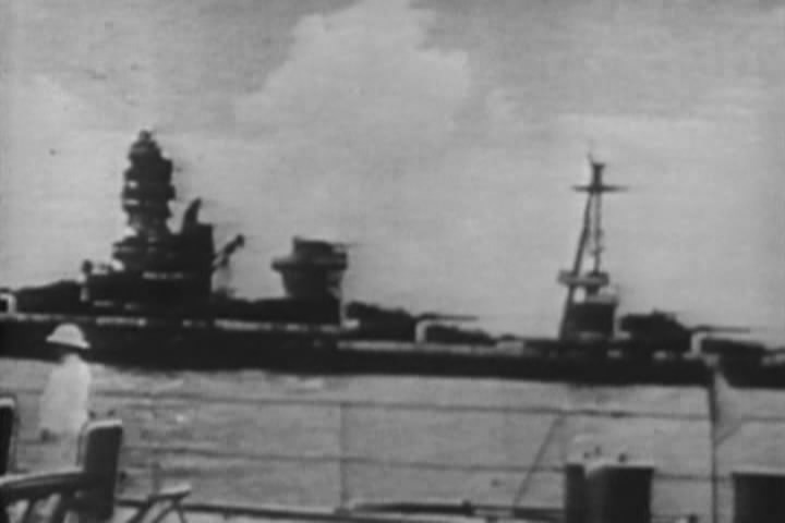 Meanwhile the Japanese fleet is moving towards its attack position for Pearl Harbor. One way to identify Japanese warships is the very tall tower-like section that they have.