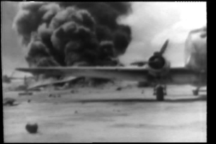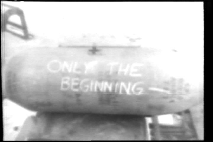 The video starts out with Japanese fighters attacking B-29 bases. 14 of 15 Japanese planes were shot down in this raid which destroyed four B-29's. A retaliatory attack is launched against Japan.
