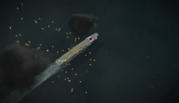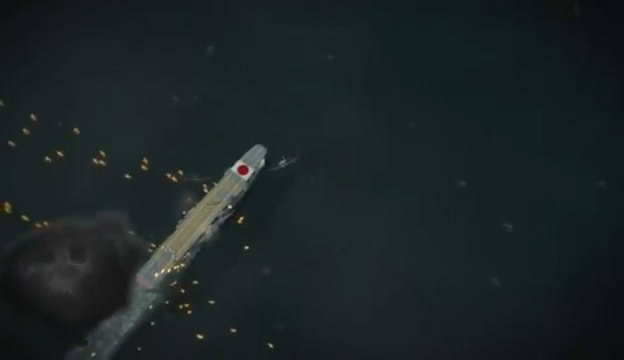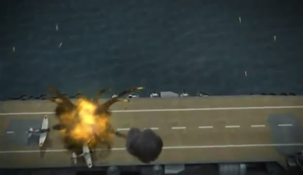 Planes from the last Japanese carrier remaining, the Hiryu, launch to attack the American carriers.
