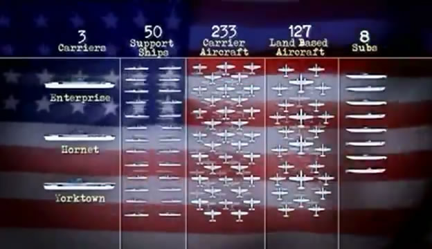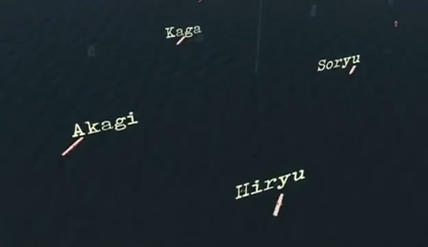 The torpedo bombers were among the many planes shot down by the Japanese in the first wave of American attacks. The film notes that there was very little coordination between the various carriers on the launching of their planes.