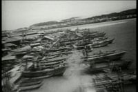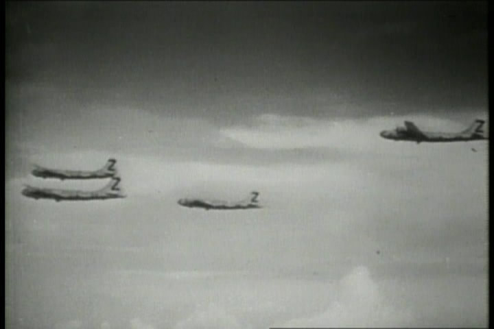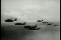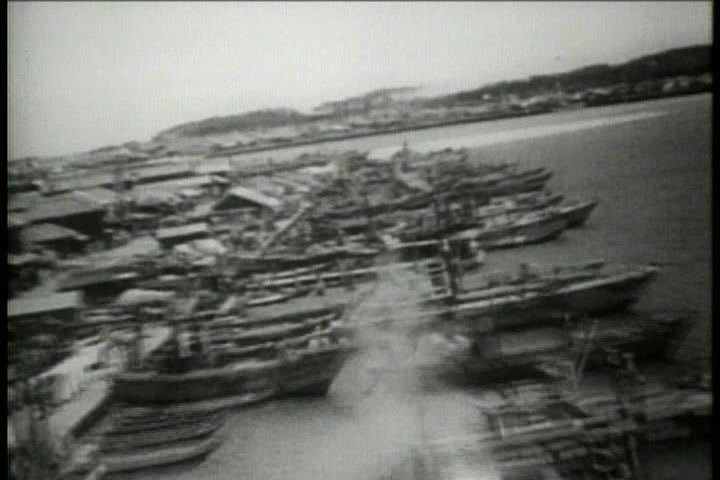 U.S. planes bomb and strafe ships and Japanese planes on the ground.