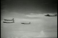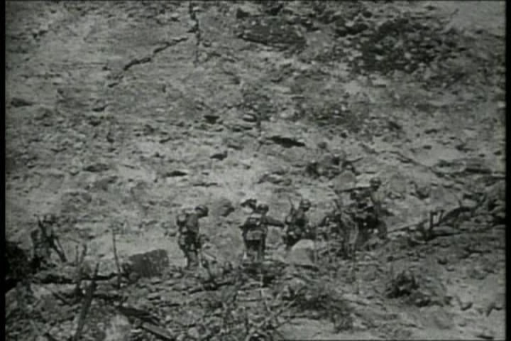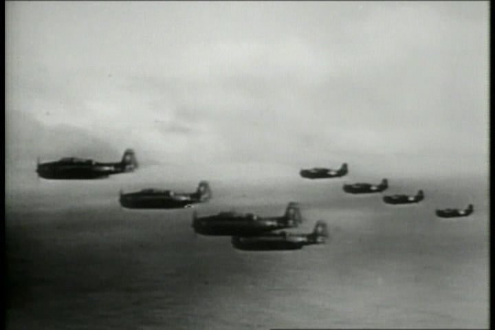 Carrier-based planes join the attack. Th film says some 5,000 Marines were killed taking the island, but some 25,000 lives of pilots and crewmen were saved by the use of the island as an emergency landing area.