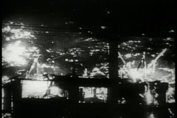 The video also talks about the great fire raids. 66 cities were firebombed.
