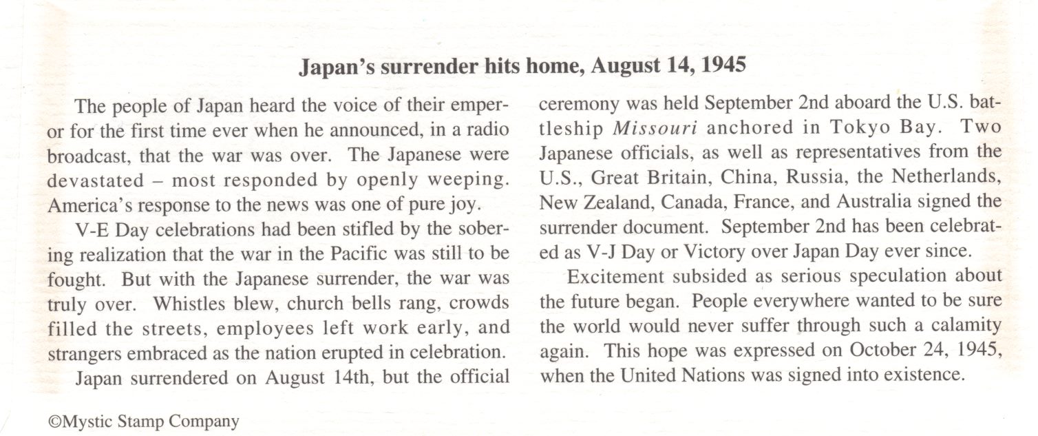 Sources on The time near the end of the war, Japan's surrender, and shortly thereafter