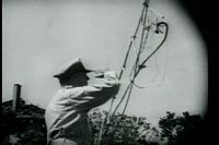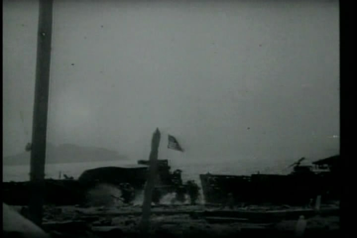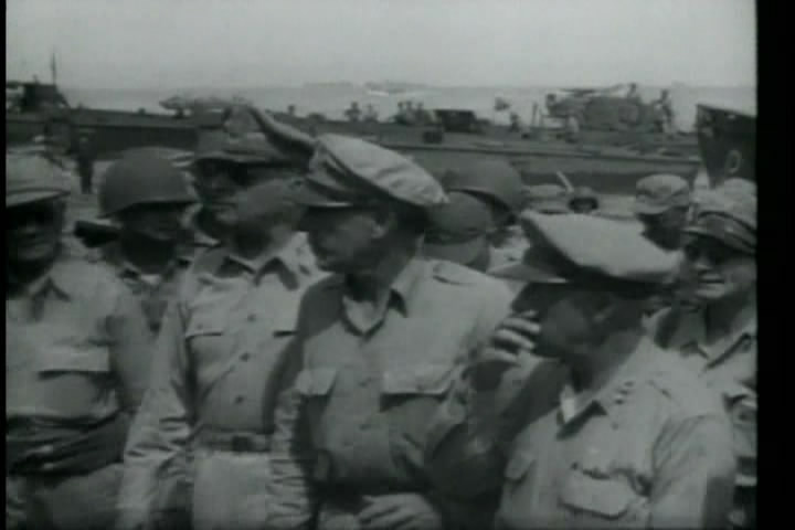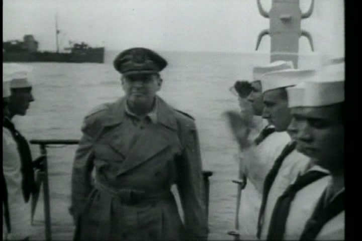 MacArthur arrives after the island is taken for the ceremony of raising the U.S. flag.
