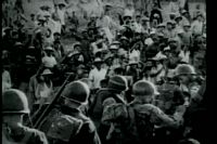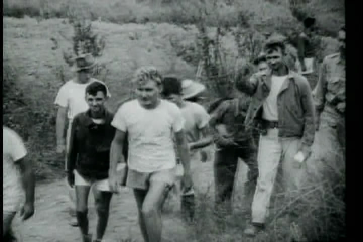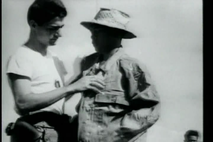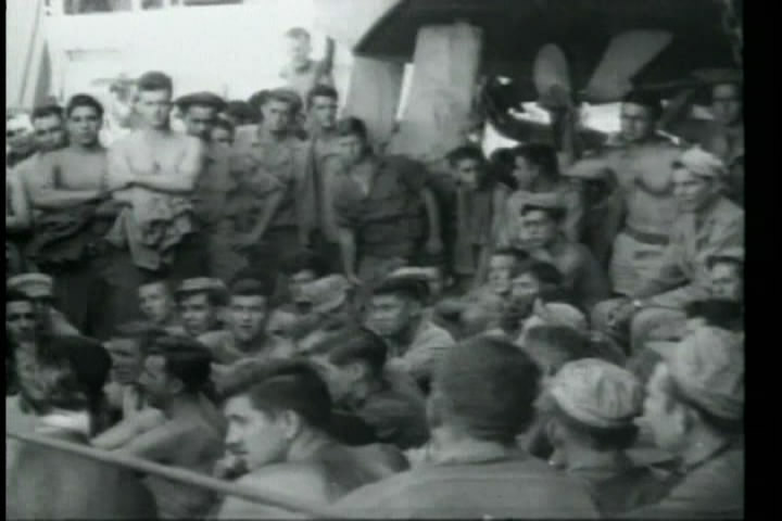 Filipinos who had been fighting a guerrilla war against the Japanese join forces with American troops and are given clothing and weapons.