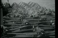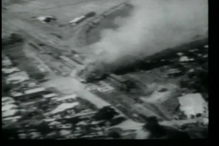A wide variety of targets was attacked. We see planes attack locomotives, storage tanks, buildings, and other things.