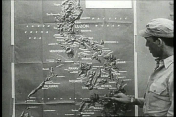 A map and a guy explaining what they plan to do when they attack the Philippines.