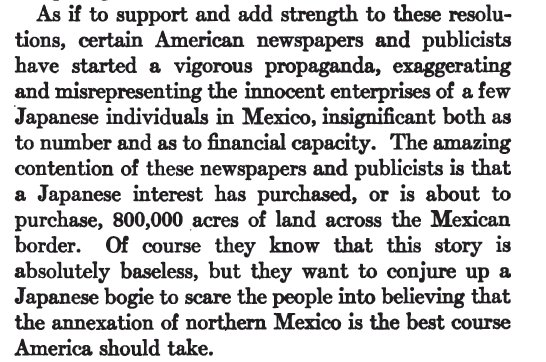 I have read elsewhere about the rumor of Japanese in Mexico, but I hadn't read about the U.S. wanting to annex those areas of Mexico.