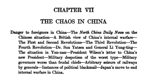 Chapter 7 contents. The chapter starts by talking about the admittedly chaotic conditions in China.