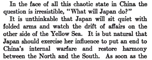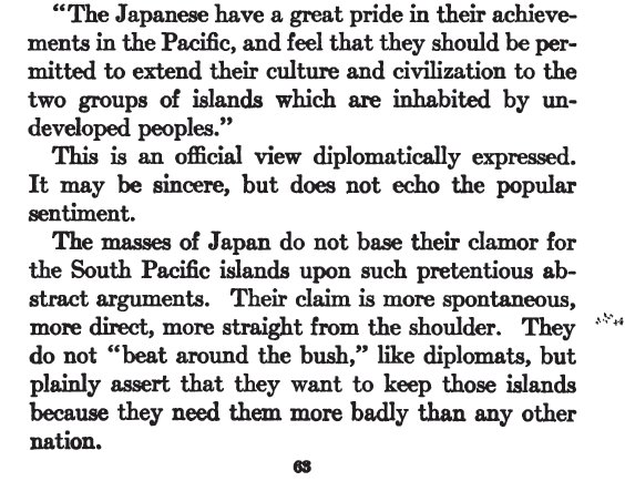 Let me see. Since Japan 'needs' the islands more badly than any other nation, it's okay for them to take them? The one thing the author does bring up is that the islands were German colonies, so why can't they be Japanese colonies, and that argument is understandable, at least.