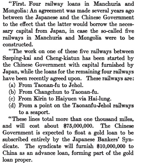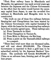 Japanese loans to China to help China build railroads.