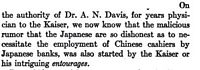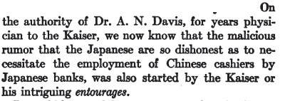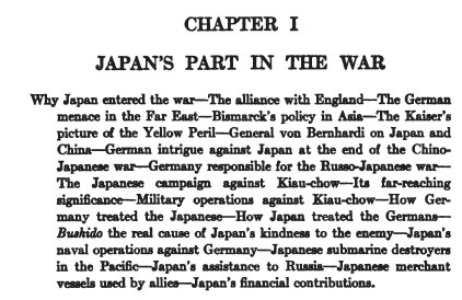 He blames at least one anti-Japanese rumor in the U.S. on Germany. The rest of the first chapter deals with Japan's actions in the first world war, when it was allied with England and the U.S. against Germany.
