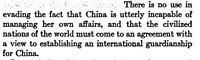He's saying that China can't manage its own affairs, implying that Japan should be the one to do so.
