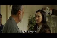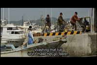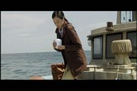 The woman wants to rent a boat to take her to the site of Yamato's sinking. She asks several people, but no one is willing to take her.
