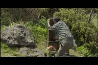 Later, we see him cleaning a gravestone.