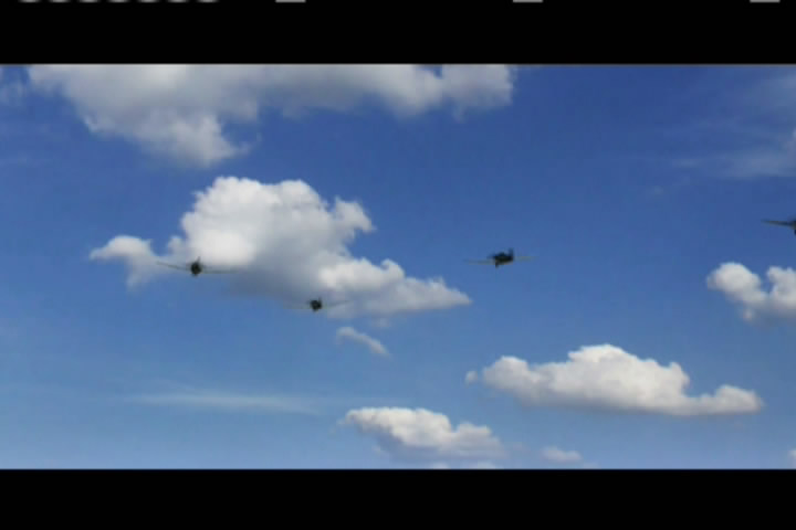 Robert Duncan is flying one of the Hellcats. He spots a Japanese Zero, but, since his radio isn't working, he can't notify any one else in the flight group, so he heads after the Zero himself.