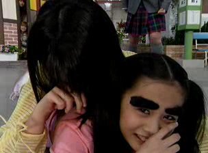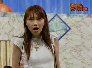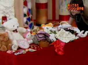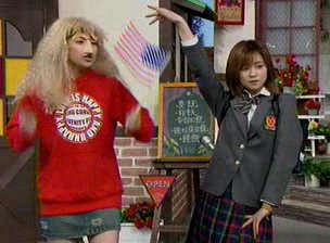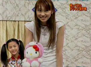 Meanwhile, Kago Ai is caught after she has decided to eat some of the display. (I remember an Ayaka's English Lesson show where she was caught taking some food from a stand in a hallway.)