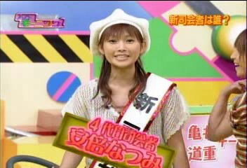 Abe Natsumi has become the new host of the show. Cyndi Lauper's "Girls Just Want to Have Fun" is playing in the background.