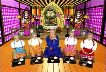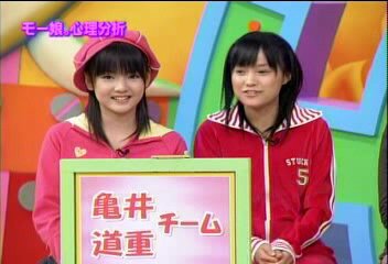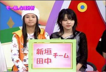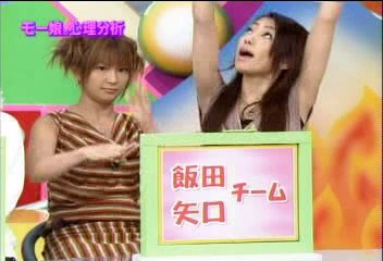 There are seven teams of 2 girls each. Iida Kaori is the first in the "box" and she is asked a question. The girls apparently try to figure out what answer she will give and they draw it on their boards. They all end up being wrong.