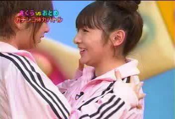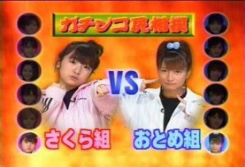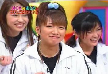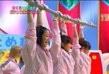 1. Sakura vs Otome physical endurance match consisting of several sections. The first one is trying to catch pieces of paper that are falling, using a pair of plastic tongs.