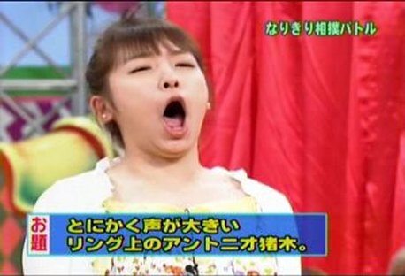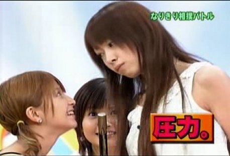 3. More of the acting game, which is also referred to as the "sumo battle." Probably because the two "actresses" face off staring each other down to begin, and the narrator uses a paddle like is used in actual sumo matches to indicate the winner.