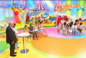 1. Haromoni Psychological test. Some psychological questions are asked the girls, such as "who eats candies the most?" The girls are given small photos that they will hold up to indicate which member of the group they believe fits the answer.