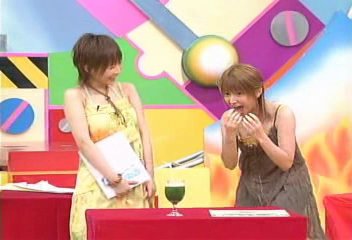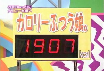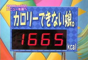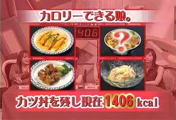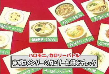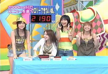 1. The first portion will deal with a "calorie battle" in which the girls will have to pick which dish has the most calories from a variety of dishes shown on cards. The girls are then divided into three teams, those who had a "good perception" of calories, those with moderately good perception, and those with bad judgment about calories. The girl most off will have to drink a bitter melon juice, which turns out to be Mari Yaguchi.