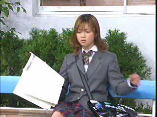 Hitomi and Kei in a skit involving a young girl and the old lady.