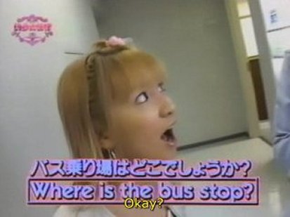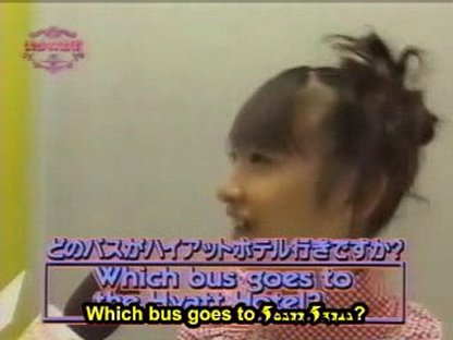 4/06. Which bus goes to the Hyatt Hotel? (Kago Ai) She does a tremendous job of mangling the entire sentence and never really does get it right.