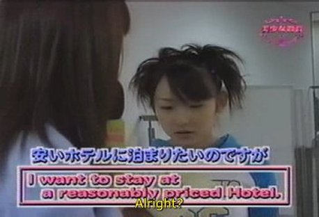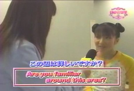 4/12. Are you familiar around this area? (Tsuji Nozomi) Again, she totally slaughters the line. She has say two of the words in a row ok, but when she tries to put the entire sentence together it comes out hopelessly mangled.