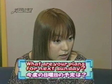 4/23. What are your plans for next Sunday. (Yasuda Kei) This time there is no stack of blocks. The girl can pick the phrase she wants to try from the "menu" that Ayaka gives her.