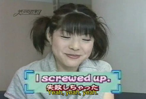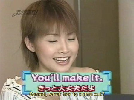 5/02. You'll make it. (Abe Natsumi) Pronouncing the double "l" in the "you'll" word is very hard for her to do.