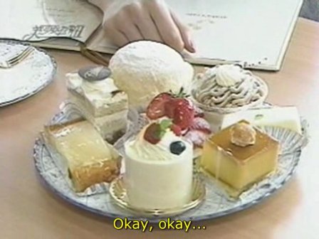 5/07. I ate it. (Yaguchi Mari) She got too excited about the cake. Yaguchi ran in and hit the table, falling onto the couch. After she gets her cake and takes a bite she gets up and tries to escape (with the cake, of course).