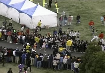 A1: This section has 14 tracks, basically behind-the-scenes filming of their movie Pinch Runner. From most of the footage it's surprising that the girls were working in some very cold weather. The film crew would have heavy jackets on while the girls were in whatever outfit they were wearing at that point in the film. There were also many people watching the filming, running around to get better views of their favorite Morning Musume girls.