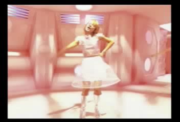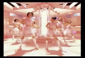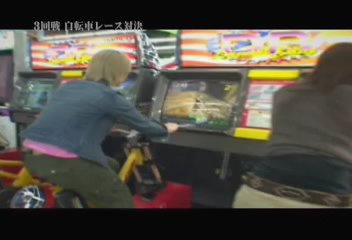 Finally they ride an arcade machine that has bikes and the course is projected on the screens. During the entire time this is going on the song is playing in the background.